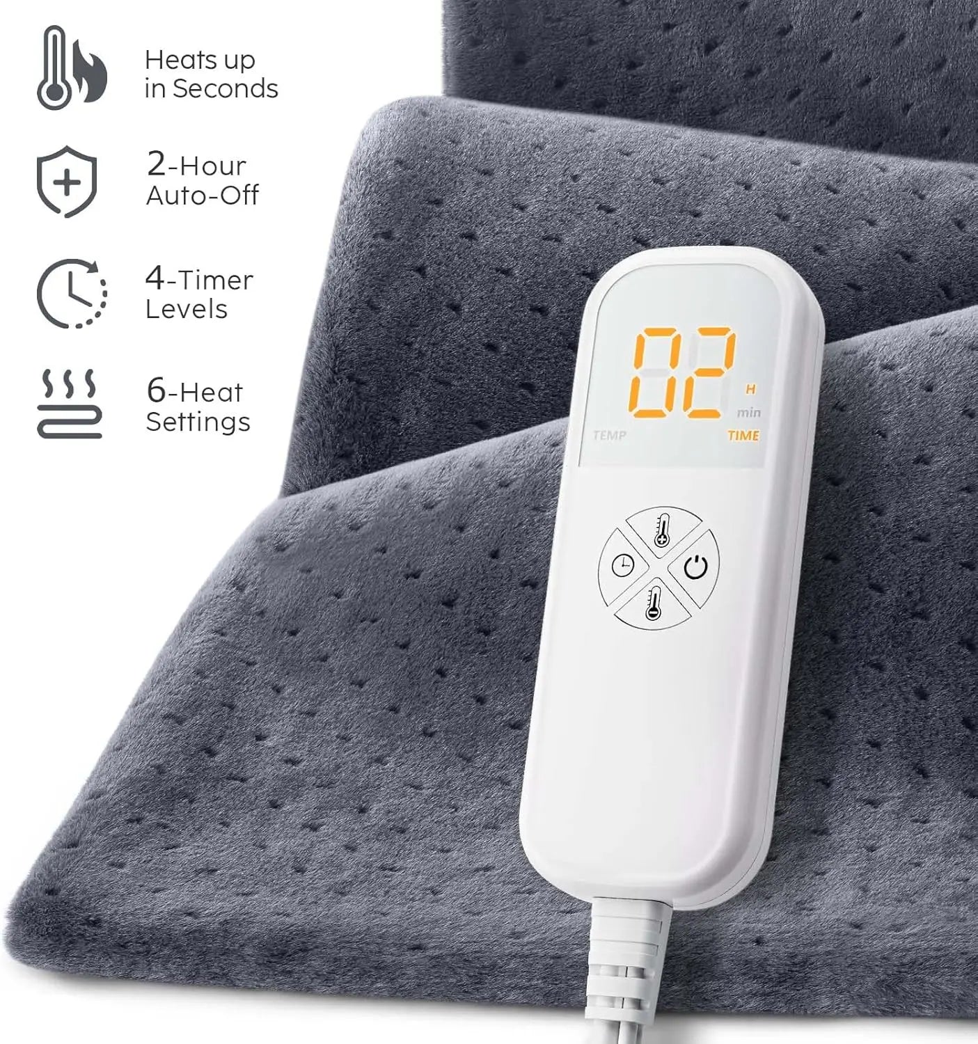 Experience ultimate relief and comfort with our versatile electric heating pad. Designed to target deep muscle groups, it effectively soothes back pain and period cramps, making it a perfect gift for women, men, moms, dads, or loved ones on any occasion. Key Features: 1. King-Size Coverage: Measuring 12x24 inches, this large heating pad provides generous coverage for legs, back, shoulders, or other body areas. Its flexible design contours to curves for maximum comfort during use. 2. Customizable Heat Therapy: Choose from six preset heat levels to personalize your experience. Whether you prefer dry heat or moist heat for deeper penetration and enhanced pain relief (simply spray with water), this pad adapts to your needs. 3. Safety and Convenience: Built-in automatic shut-off ensures peace of mind during use. The machine-washable fabric allows for easy cleaning and maintenance without hassle. 4. Versatile Gifting Option: Ideal as a thoughtful present for Father's Day, Mother's Day, birthdays, Christmas, or everyday appreciation. It offers practical pain relief that anyone can enjoy. 5. Quality Assurance: Backed by a reliable warranty and hassle-free return policy for added confidence in your purchase. Benefits: - Provides quick relief from daily aches and pains through targeted heat therapy. - Enhances relaxation and comfort with adjustable settings to suit individual preferences. - Durable construction ensures long-lasting performance for repeated use at home or on the go. - Easy-to-clean design makes upkeep simple and convenient over time. Perfect for those seeking natural pain management solutions without medication side effects.